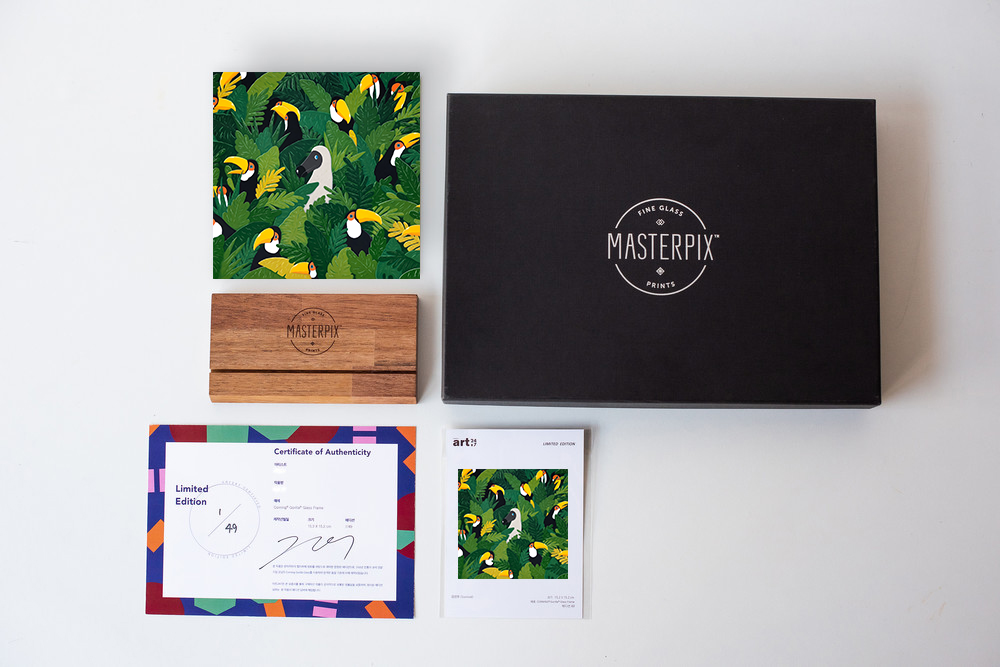 160년 역사의 특수 유리 전문 기업인 코닝의 프리미엄 액자인 마스터픽스(MASTERPIX™)의 한정판 유리 액자입니다. 뛰어난 내구성과 있는 그대로 색을 구현하는 강화유리인 CORNING® Gorilla® Glass를 사용하여 충격에 강하며, 한 손으로 들고 옮길 수 있을 정도로 얇고 가볍습니다. 코닝의 고릴라 글라스는 아이폰, 삼성TV 등 전세계 50억대 이상의 첨단 디스플레이에 사용되는 특수 강화유리입니다. (아트247은 코닝정밀소재주식회사와 아트컨텐츠 큐레이션의 협약을 맺은 협력사입니다)
